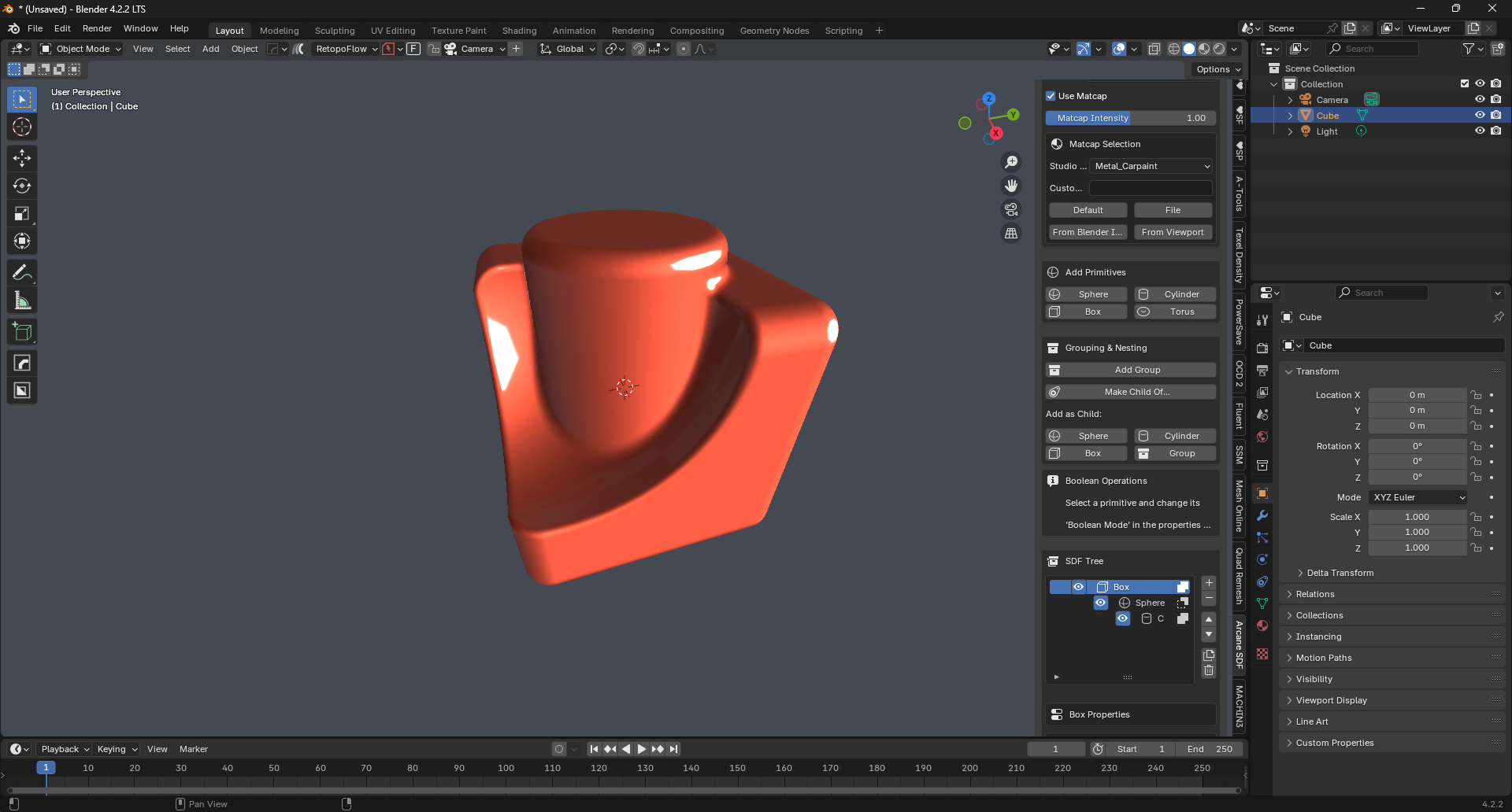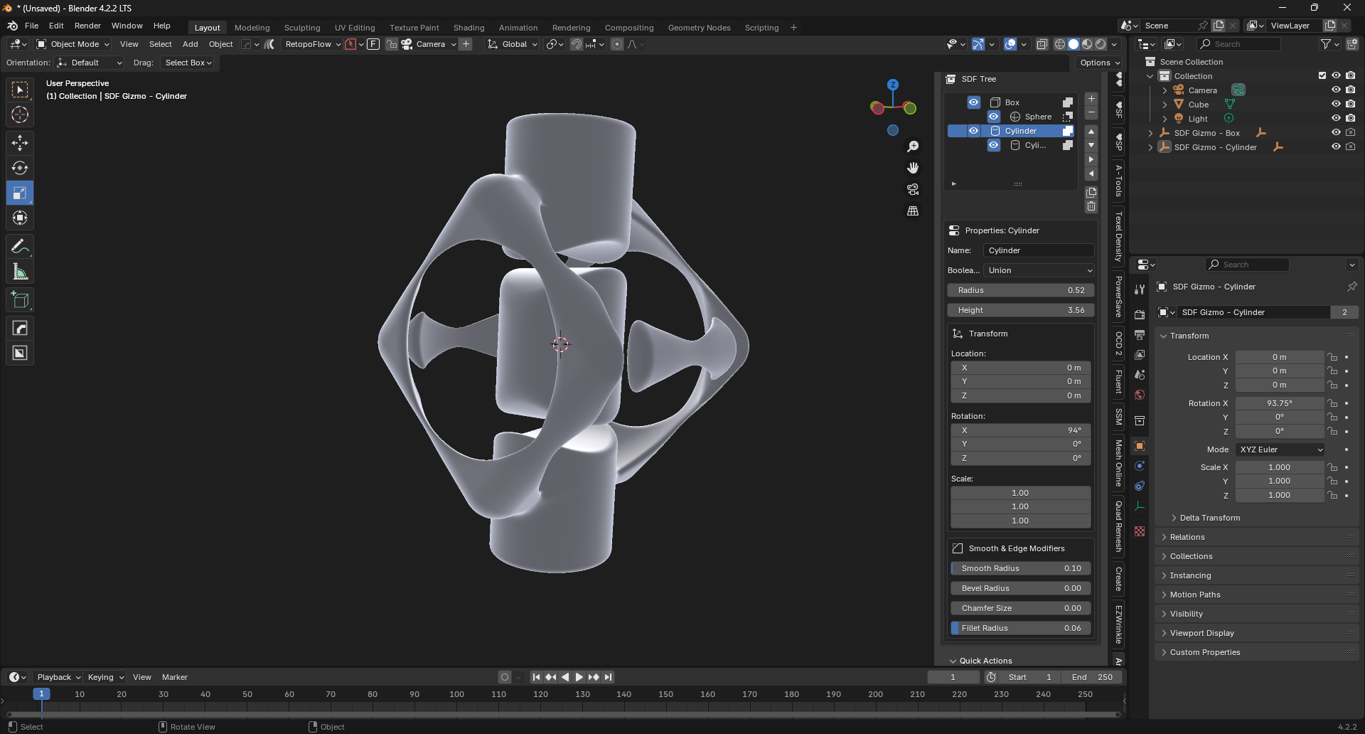 - - Create the impossible: Build intricate shapes by combining SDF primitives with blends, booleans, and smooth unions—no topology headaches.